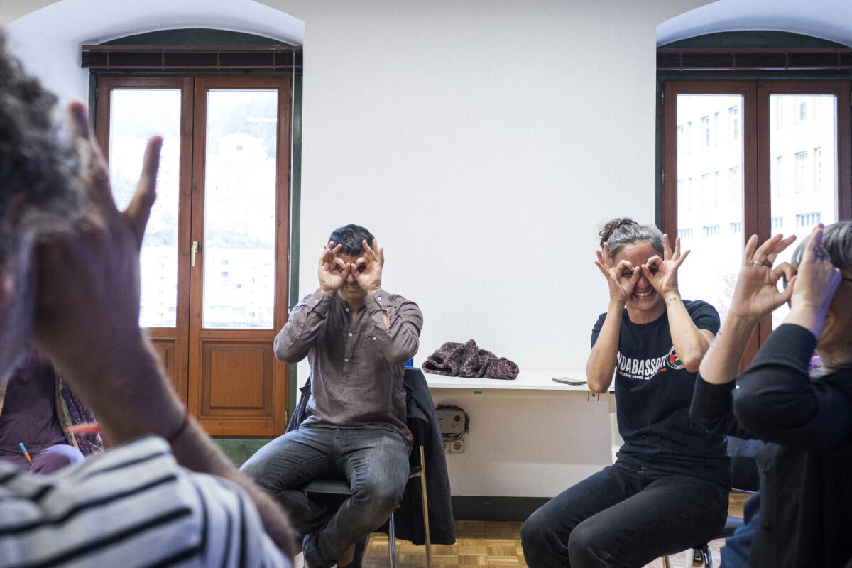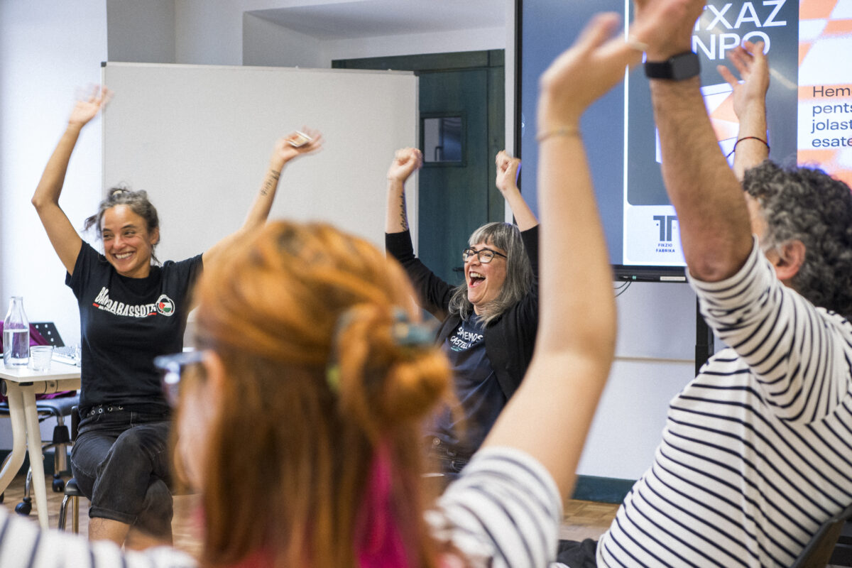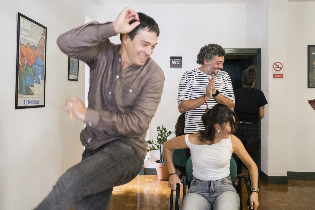 - ZEINUA: “Sign” jokoaren moldaketa bat erabili genuen, Nicaragauako ume gor talde baten esperientzia oinarri hartuta, hizkuntza konpartiturik ez duen (eta sortuko duen) giza talde bat bihurtzeko. Hitzez komunikatu ezinak zeinuen hizkuntza berri bat sortzeko beharra ekarri zigun eta konturatu ginen posible dela. Kode partekatu bat sortu genuen eta jerarkiak desagertzeko balio izan zuen.