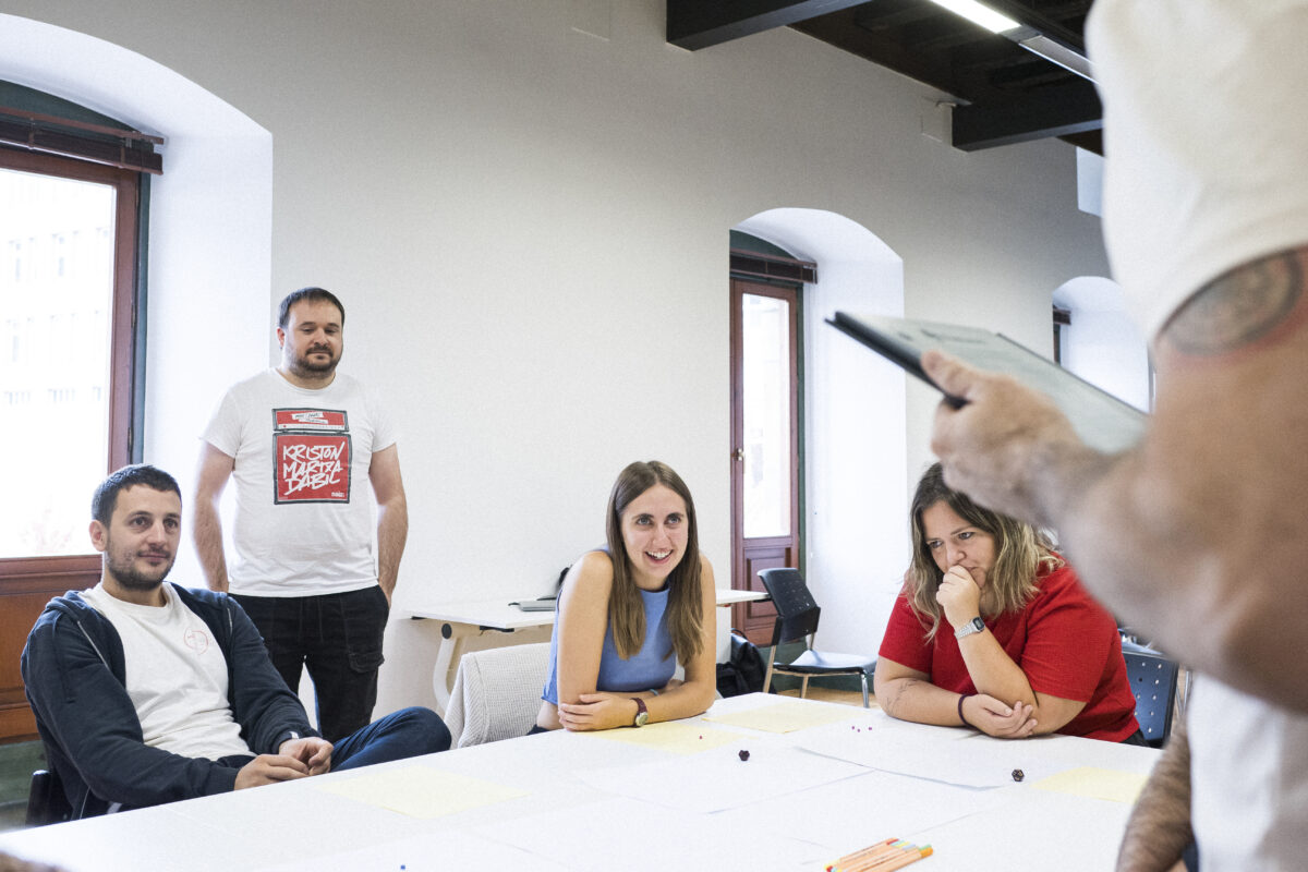 Fikzio Fabrika kolektiboak eta Badalab Hizkuntza Berrikuntzarako Laborategiak Kutxaz Kanpo zikloa antolatu genuen 2024an zehar mahai, karta eta rol jokoen bidez euskararen eta euskal hiztunen etorkizunak landu eta pentsamendu eta hausnarketa bide berriak sustatzeko.