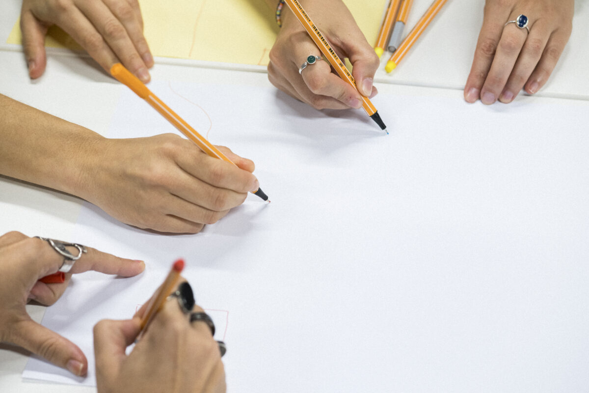 Bazkal ostean, mahai joko mordo bat eskaini zitzaizkien parte-hartzaileei, haien kezka, itxaropen eta arduretatik abiatuta kutxaz kanpo saio berri bat diseinatu zezaten taldean. Talde bakoitzak bere proposamena eskaini zion besteari, eta balio izan zigun estres egoeretan erabaki kolaboratiboak hartzeko, kooperatiben baloreetan sakontzeko eta gure aurreiritzien inguruko hausnarketa bat egiteko ere.