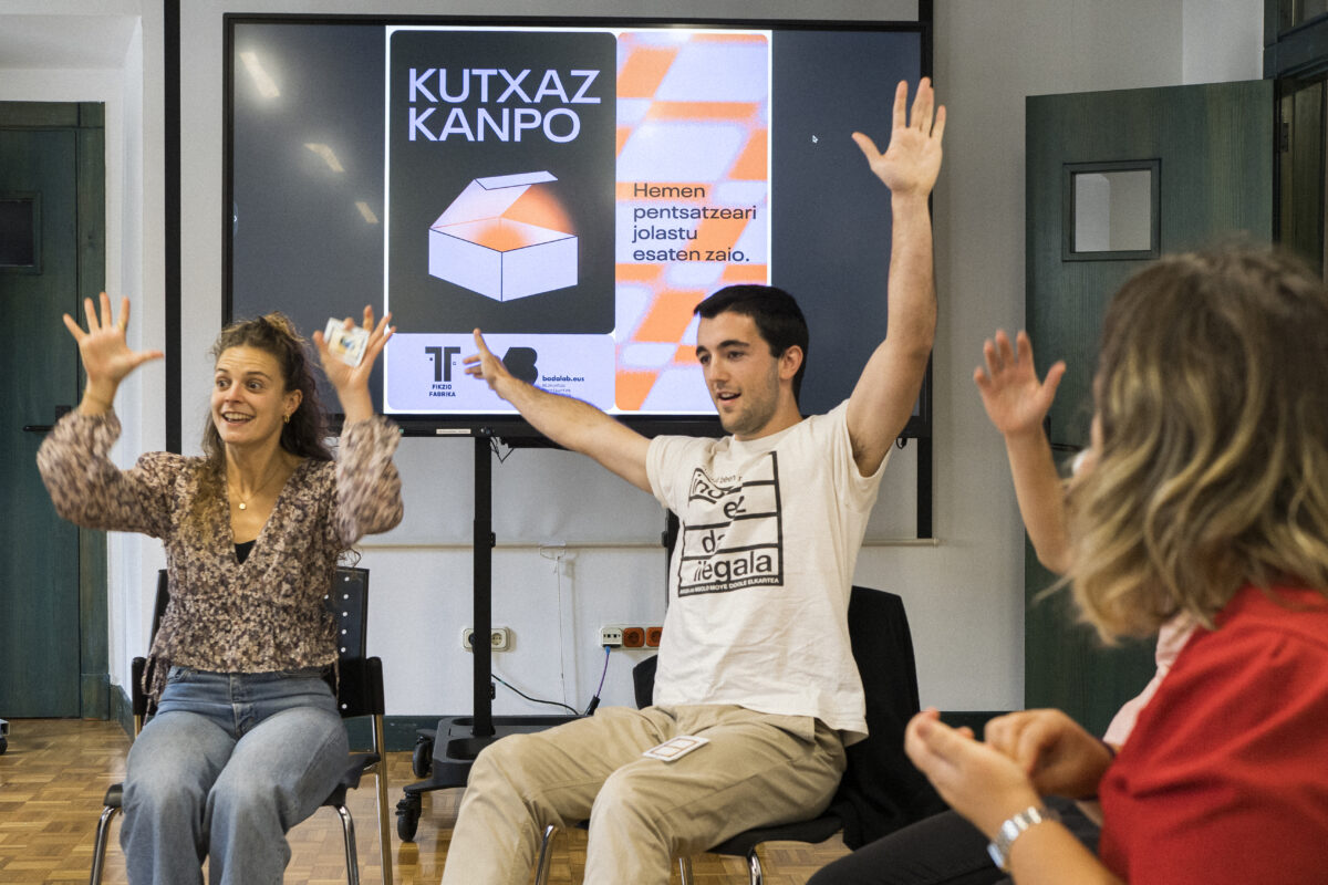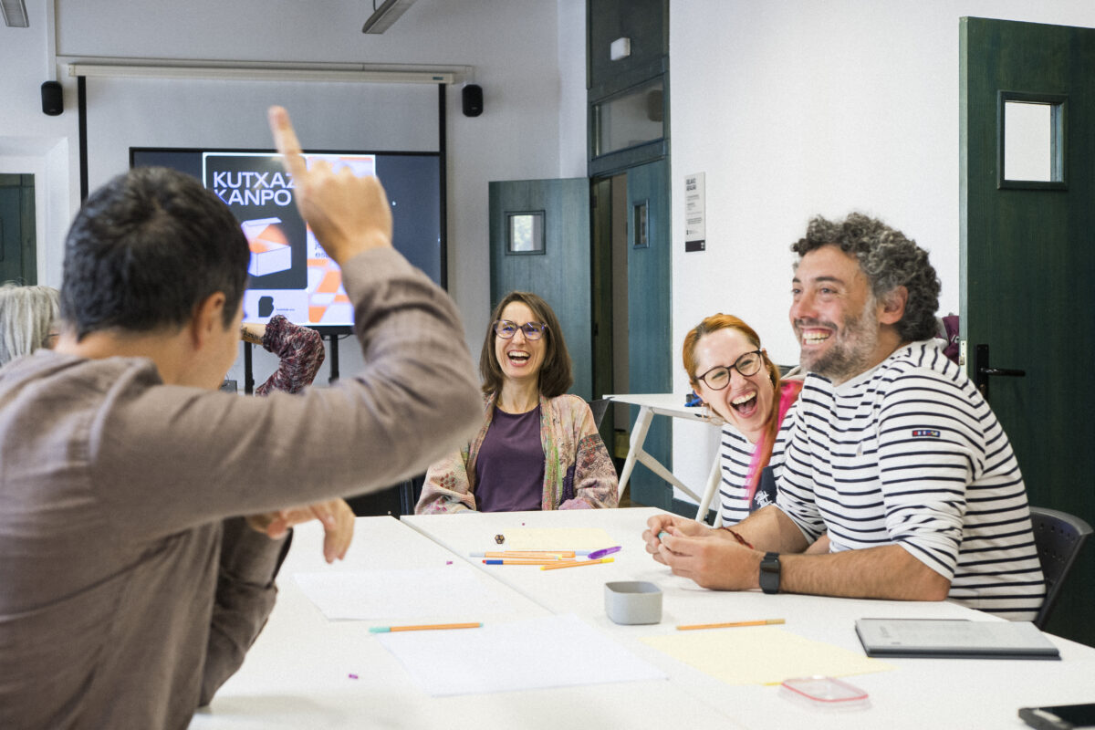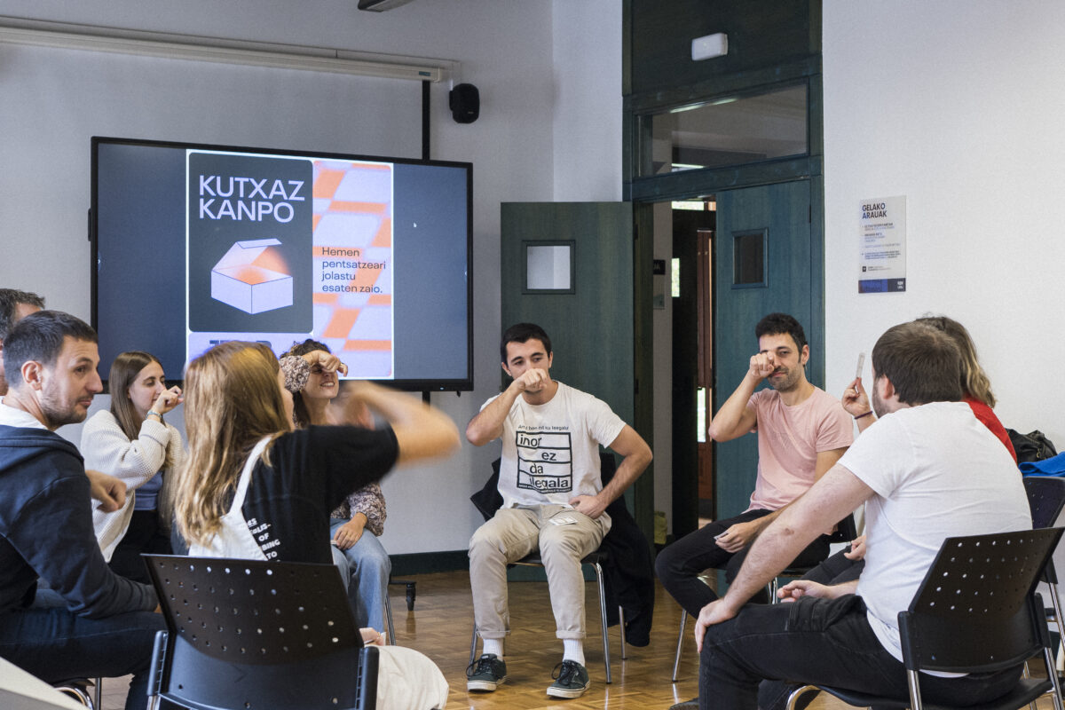 Eta bide horretatik, pasa den urriaren 3an Kutxaz Kanpo proposamena egun osoko ahalduntze ludikorako saio bihurtu genuen Eibarko Markeskoa jauregian, euskalgintzaren ertz eta bektore ezberdinetako eragileekin batera maizter eskola* moduko bat antolatzeko. Asmoa parte-hartzaileei mahai jokoak erabiliz marko ludiko eta esperientzial eraldatzaileak sortzeko formakuntza eskaintzea zen. Izan ere, Euskal Herriko eragile ezberdinei tresnak eta heldulekuak eskaini nahi dizkiegu ludikotasunetik euskararen eta euskal hiztunen etorkizun egingarri, desegingarri, desiragarri eta arbuiagarrien gaineko espekulazio estrategikoak burutu, diseinatu eta martxan jartzeko, nork bere errealitatetik abiatuta.